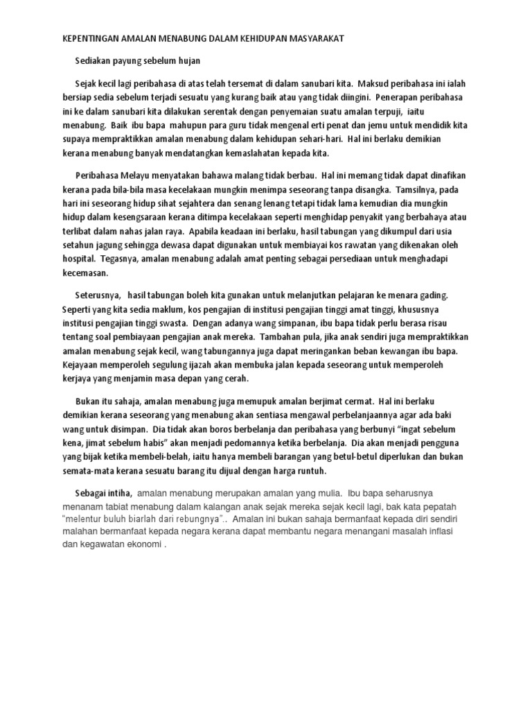 Kepentingan Amalan Menabung Dalam Kehidupan Masyarakat Pdf